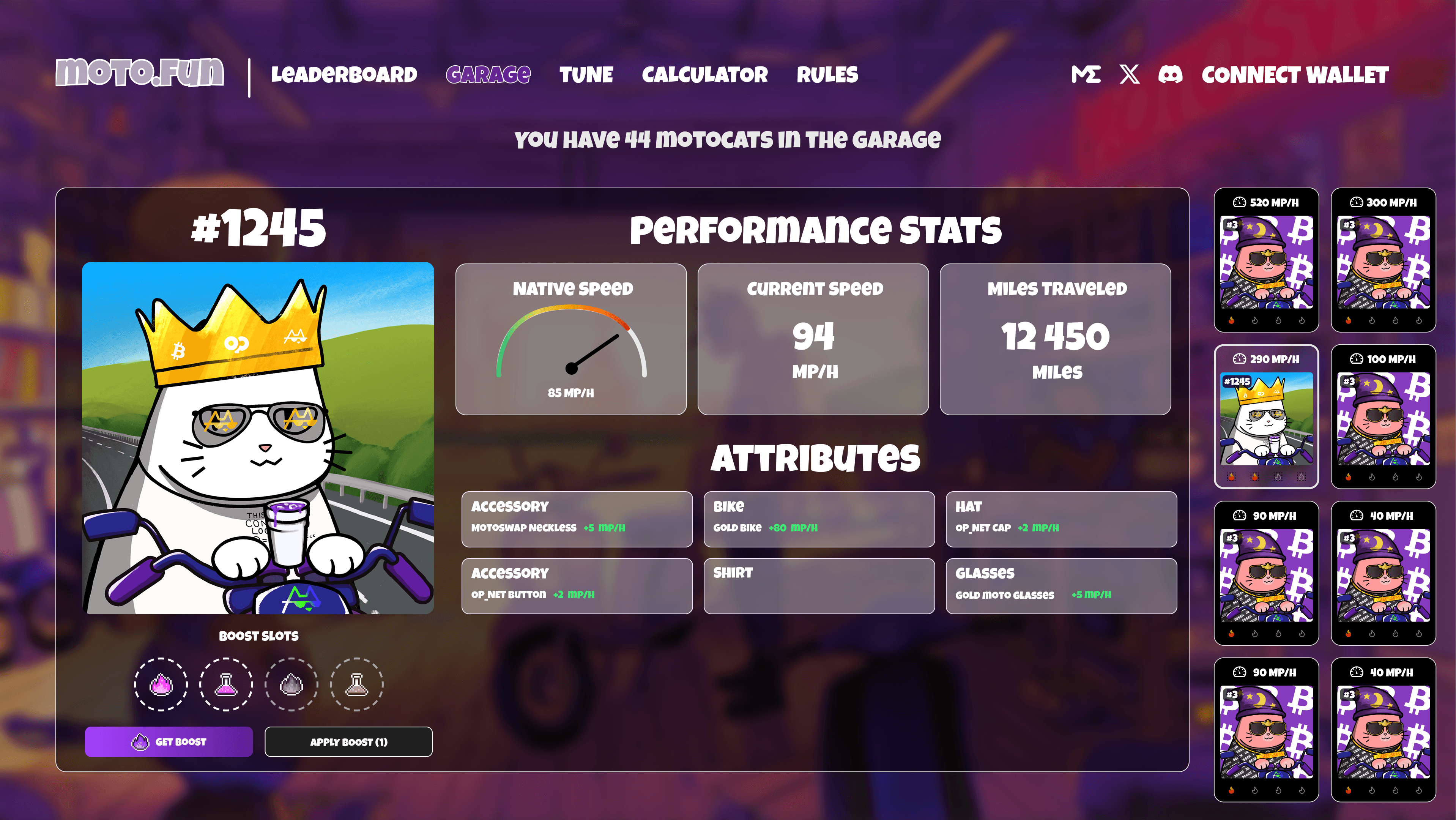 Motocat Racing Club, often referred to simply as Motocats, serving as mascots for Bitcoin-native DeFi and tying directly into the Motoswap ecosystem of yield farming, staking, and more—all on Bitcoin Layer 1.